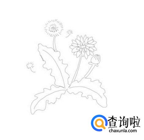 再在这朵花的右侧再画出一朵蒲公英的花蕾,如图所示: