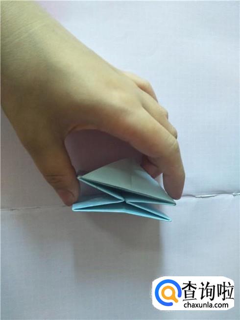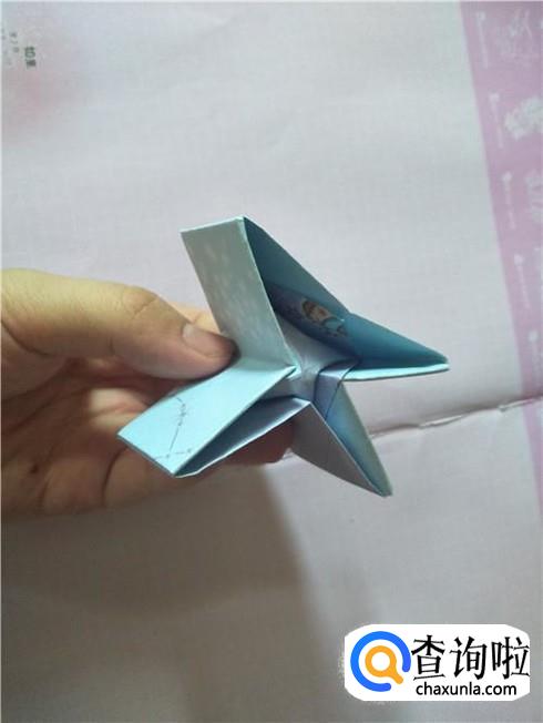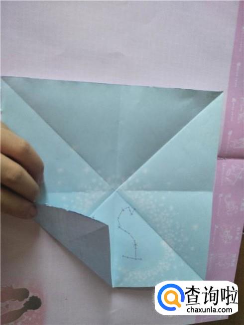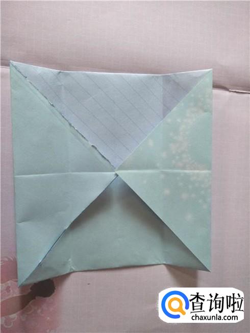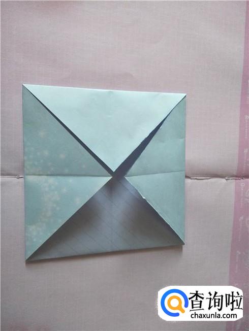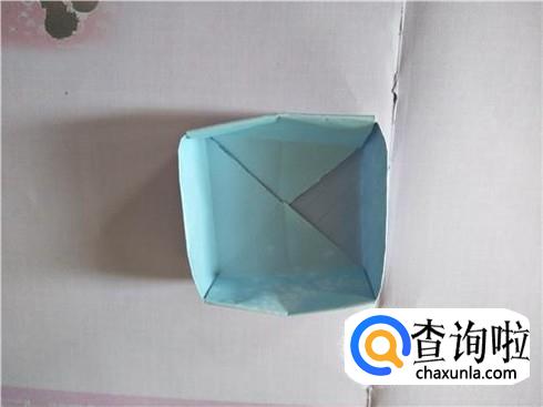 形成了一个盒子的形状,之后呢,就加盒子的底部往上顶,然后四个角往盒子的中部进行靠拢。不过呢,在这个过程之前,这些折痕都不要太过用力,以免到最后进行这一步,将盒子底部继续往上靠的时候,很难进行靠拢。