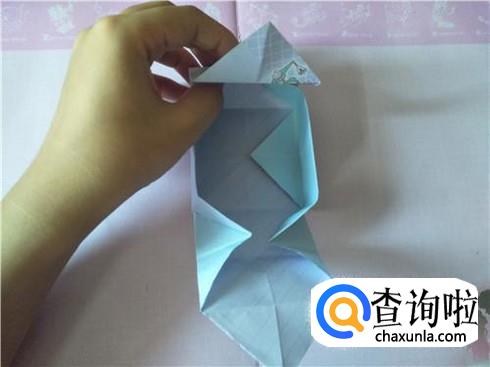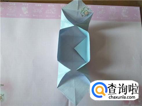 接下来就将它的两头,也就是开火车的两头将他,通过折痕将它对折起来,最后就形成了一个盒子的形状。