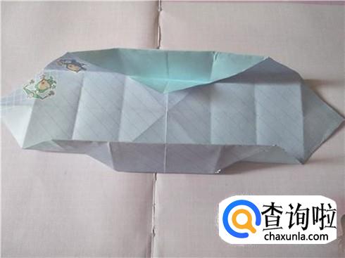 折好了之后再将它展开,展开之后会出现很多的折痕。然后再将,两边的折痕,对折在一起。就会形成一个类似于船的形状,但是它的前后是开合着的,但是它的左右是封闭着的。