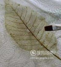 接下来拿出细笔刷,轻轻的将叶肉刷掉,并保留叶子的脉络。