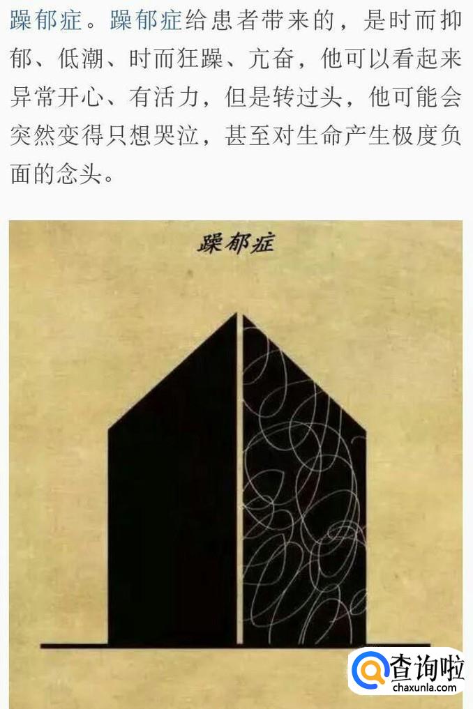 典型征兆 从忧郁、悲伤,发展至悲观失望,消极低落,自罪妄想,甚至自杀或木僵,即所谓“情感低落、思维迟缓、意志减退”三主症。