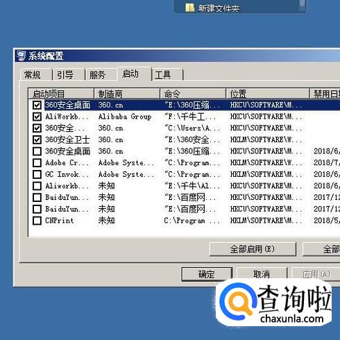 在这里展开了当前电脑正运行的程序(软件);前面已打上对勾的即是开机就自动启动的程序(软件)。比如,不想某个程序(软件)开机启动,那么,在对勾这里点击一下即取消。反之,若想某个程序(软件)开机启动,再点一下小方框,打上对勾。再点“确定”即可。