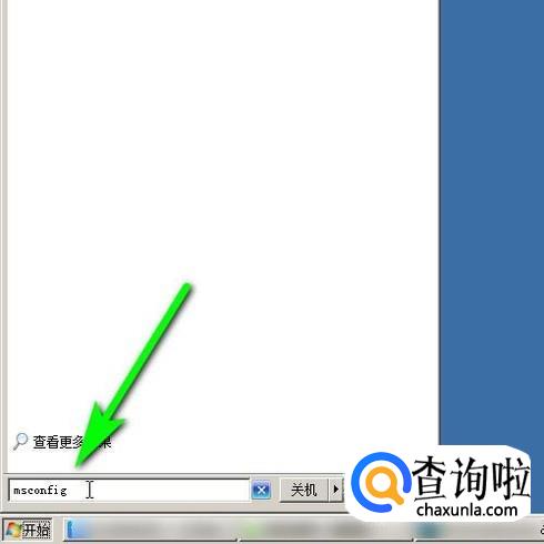 点击电脑左下角的开始按钮。在弹出的编辑框中输入:“msconfig”