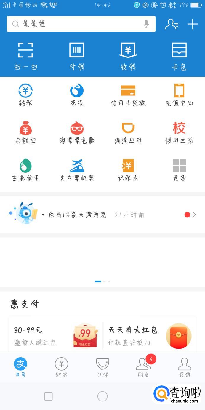 首先我们打开支付宝,然后在底端的菜单栏中找到并单击“我的”。