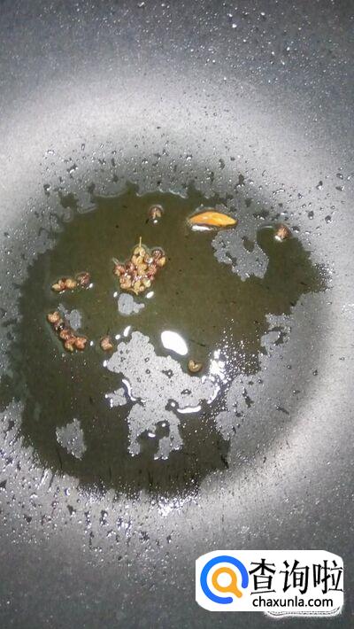 锅中放入适量油,热后放入花椒和小米椒爆香,然后将花椒和小米椒捞出来,再倒入适量,姜丝,蒜片炒香。不喜欢吃辣的,可以少放一些小米椒。