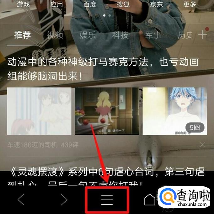首先进入手机QQ浏览器,在首页找到小编标记的按钮,也就是箭头所指的地方。