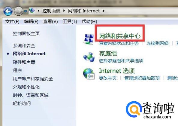 点击网络和internet,再点击网络和共享中心