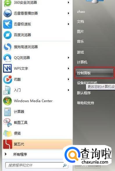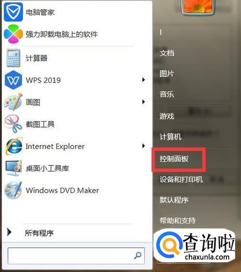 我们点击开始按钮,选择控制面板