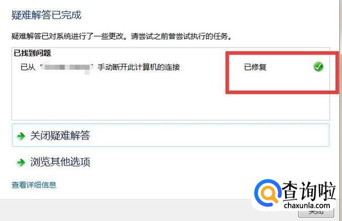 网络已经修复,点击关闭即可。