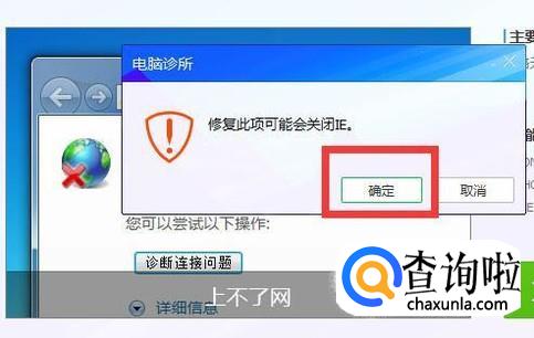 系统提示修复可能会关闭IE,点击确定。