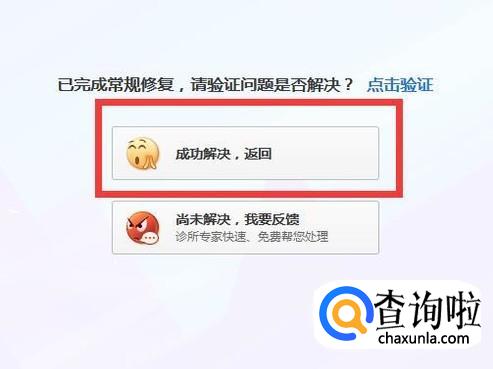 修复已完成,点击成功解决,返回。