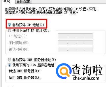 在打开的窗口中勾选“自动获取IP地址”,并点击“确定”按钮。并重启起用本地连接来尝试解决问题。