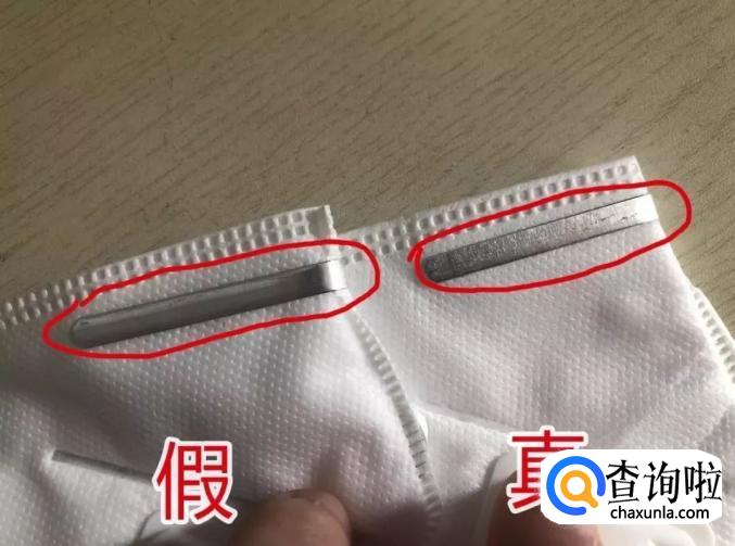 金属条其实也有明显的不同,真口罩表面没有那么光滑,而假口罩表面非常光滑。
