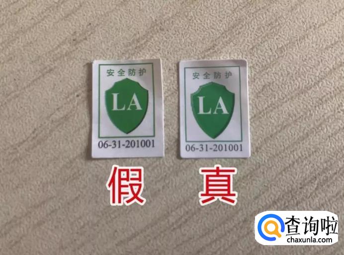 看LA标志和QS认证,不是印刷在盒子上的,那个没有用,是两个小标签。