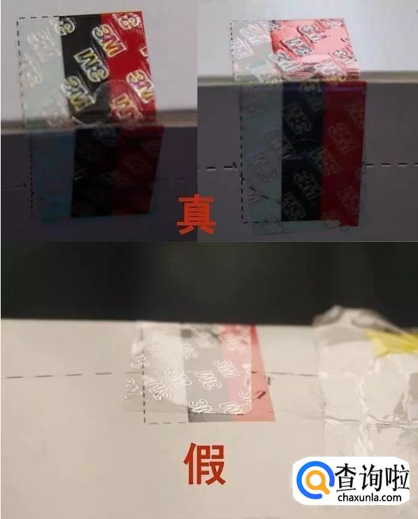3M口罩包装盒上还有一个肉眼就可以分辨的标志,就是包装盒上的激光防伪标签,真的口罩,红黑部分在某个角度会变成同一个红色,白色部分在某个角度会变成浅蓝色。而假的口罩标志不会变色。而且“3M”印花没有明显的凸凹感(如下图)