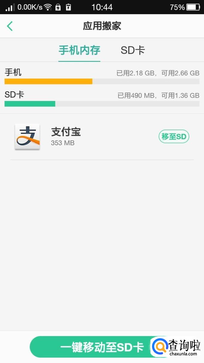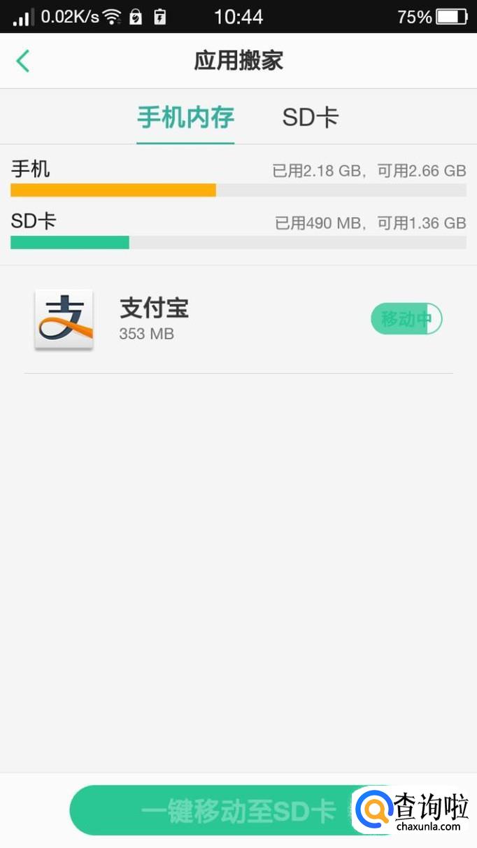 例如要把支付宝移至到SD卡中,点击“移至SD”。