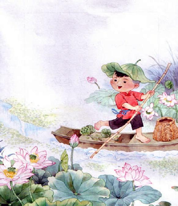 第二首诗写一个小孩儿偷采白莲的情景。从诗的小主人公撑船进入画面,到他离去只留下被划开的一片浮萍,有景有色,有行动描写,有心理刻画,细致逼真,富有情趣;而这个小主人公的天真幼稚、活泼淘气的可爱形象,也就栩栩如生,跃然纸上了。