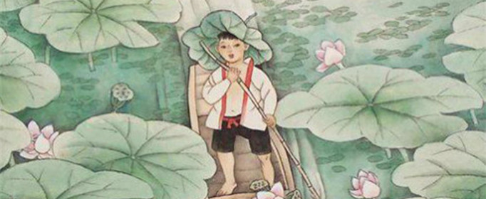 诗人在诗中叙述一个小娃娃生活中的一件小事,准确地捕捉了小娃娃瞬间的心情,勾画出一幅采莲图。莲花盛开的夏日里,天真活泼的儿童,撑着一条小船,偷偷地去池中采摘白莲花玩。兴高采烈地采到莲花,早已忘记自己是瞒着大人悄悄地去的,不懂得或是没想到去隐蔽自己的踪迹,得意忘形地大摇大摆划着小船回来,小船把水面上的浮萍轻轻荡开,留下了一道清晰明显的水路痕迹。诗人以他特有的通俗风格将诗中的小娃娃描写得非常可爱、可亲,整首诗如同大白话,富有韵味。