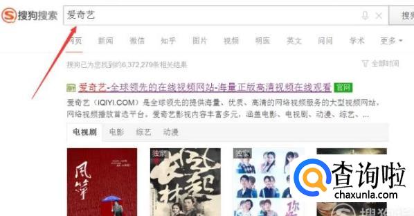 首先要做的是,获取会员视频的播放地址,把视频播放地址复制备用,打开搜狗搜索输入爱奇艺,点击搜索。