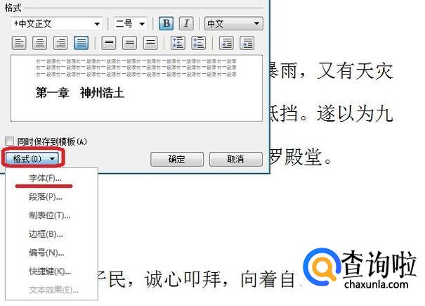 如果需要更多修改,点击选项框左下角的“格式”按钮,选择“字体”,还能进行更多设置。
