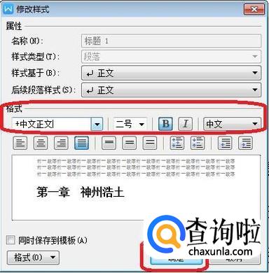 就可以在选项框中,对一级标题的格式进行修改了,如图所示。