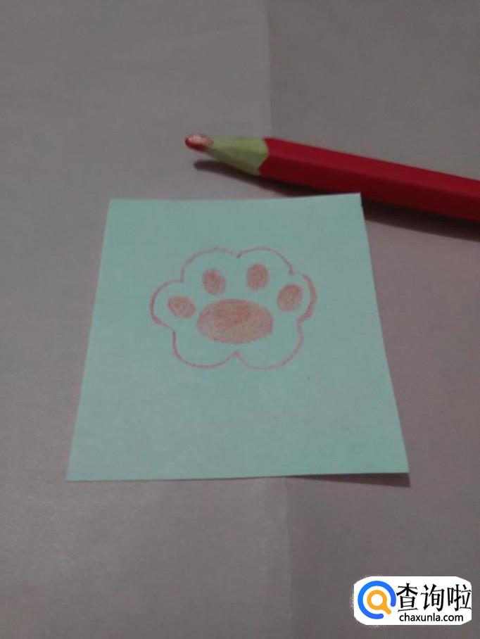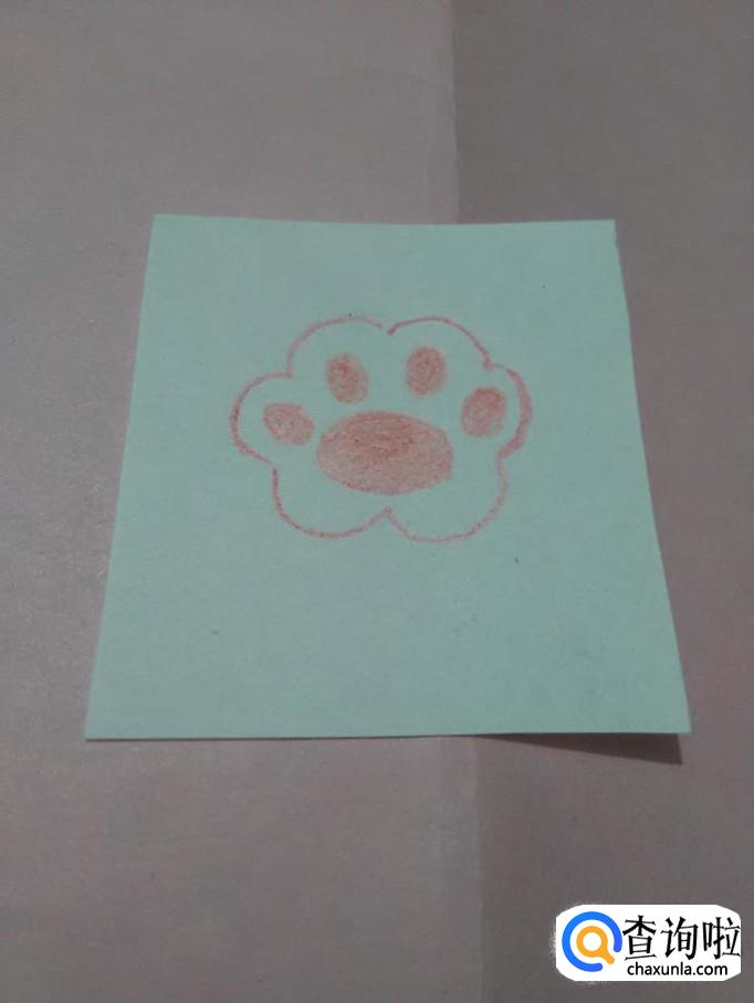 最后,用笔将五个椭圆形涂上粉红色,萌萌的猫爪就画好了。