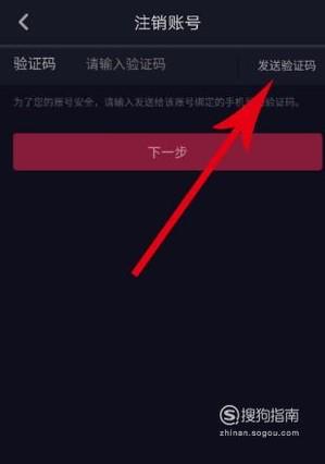 进入之后,满足注销条件,点击下一步,然后点击“发送验证码”,将验证码填好后,点击“下一步”,如图所示。