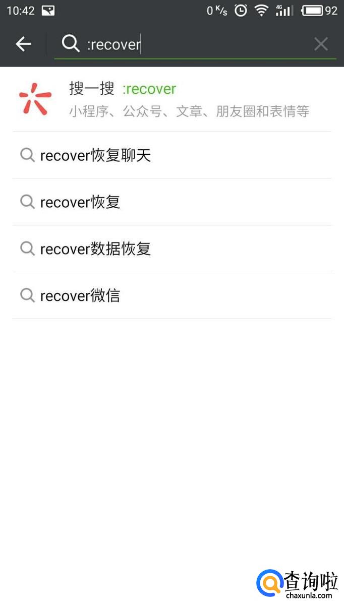 然后我们在搜索框里输入“:recover”记得要在英文状态下输入,否则系统会无法识别。