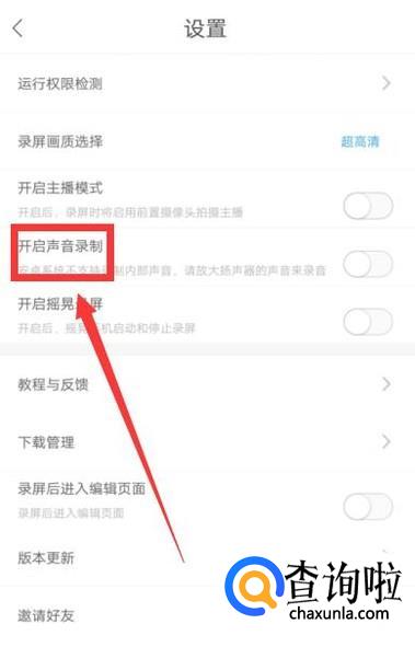 将开启声音录制选项的开关打开即可在录制的时候录制音频。