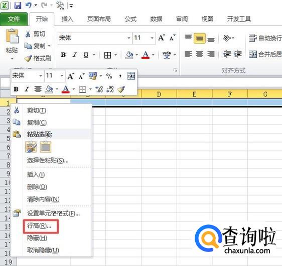 之后我们选中第一行,然后右击选择行高;