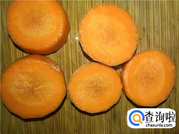 红萝卜削皮,切成两厘米宽的圆圈形状。