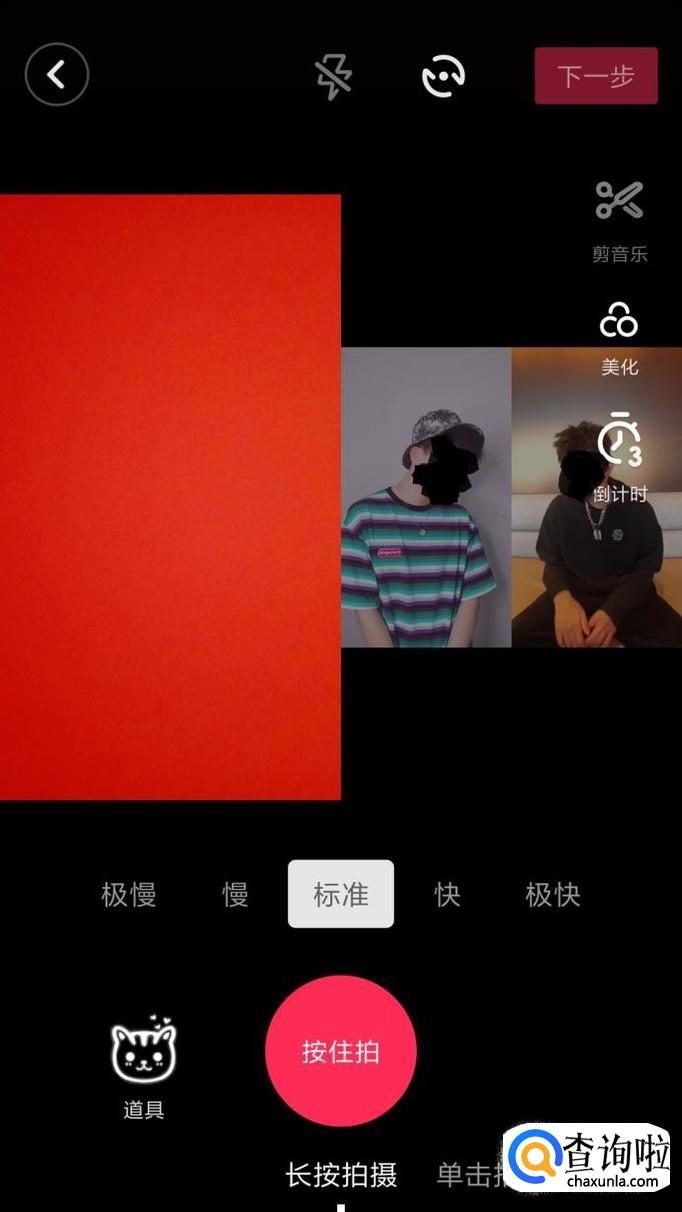 出现左右屏,左边是你自己,右边是你选择的视频,点击按住拍,长按,就可以拍摄你想要的合拍视频了。