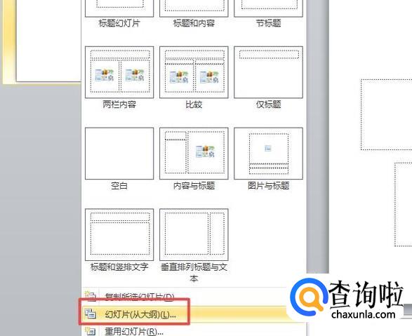 弹出的界面,我们点击幻灯片(从大纲);