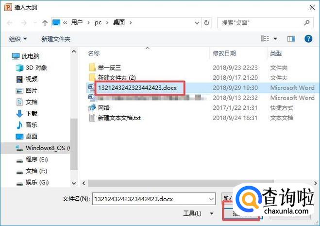 弹出的界面,我们选中我们想要导入的word文档,然后我们点击插入;