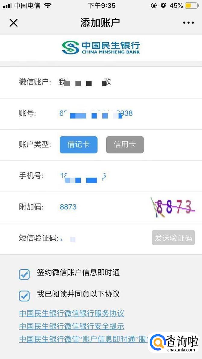 点击链接进入绑定银行卡,填写相关信息。
