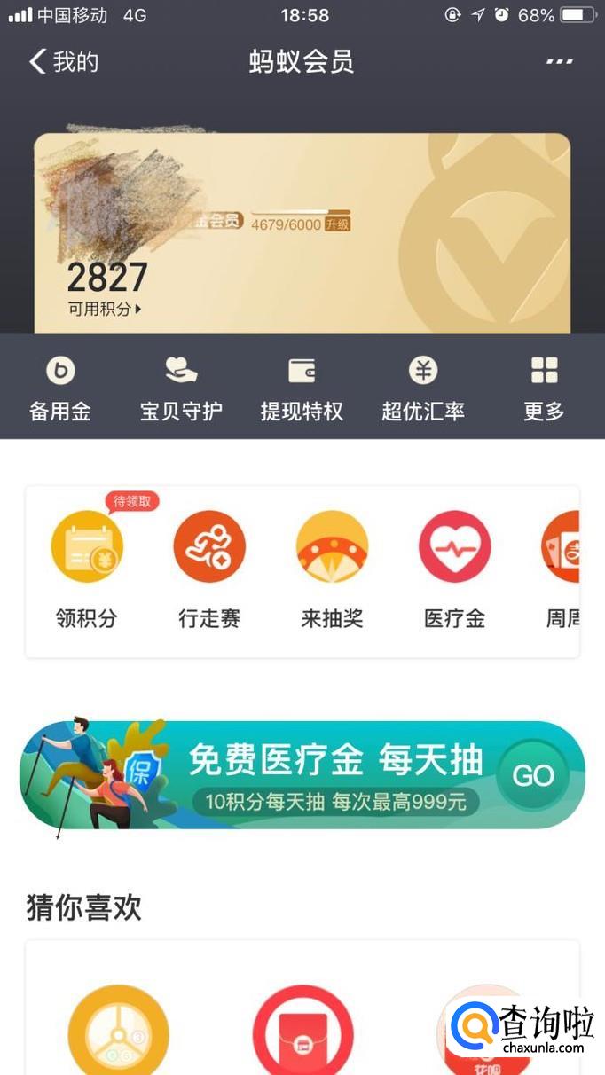 领会员积分。在蚂蚁会员界面可以领积分,每天签到都可以领积分。还有现在只要使用了支付宝付款,或者转账购买理财产品都可以获得相应的积分。