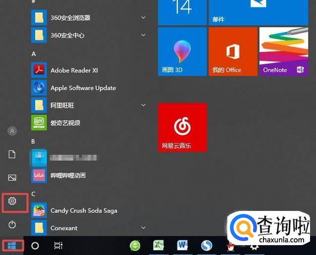 首先,我们点击电脑左下角的微软按钮,弹出的界面,我们点击设置;