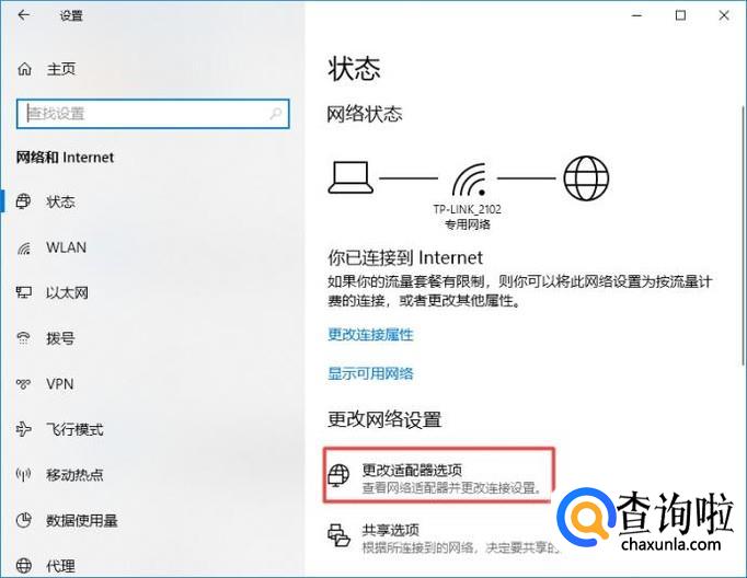 弹出的界面,我们点击更改适配器选项;