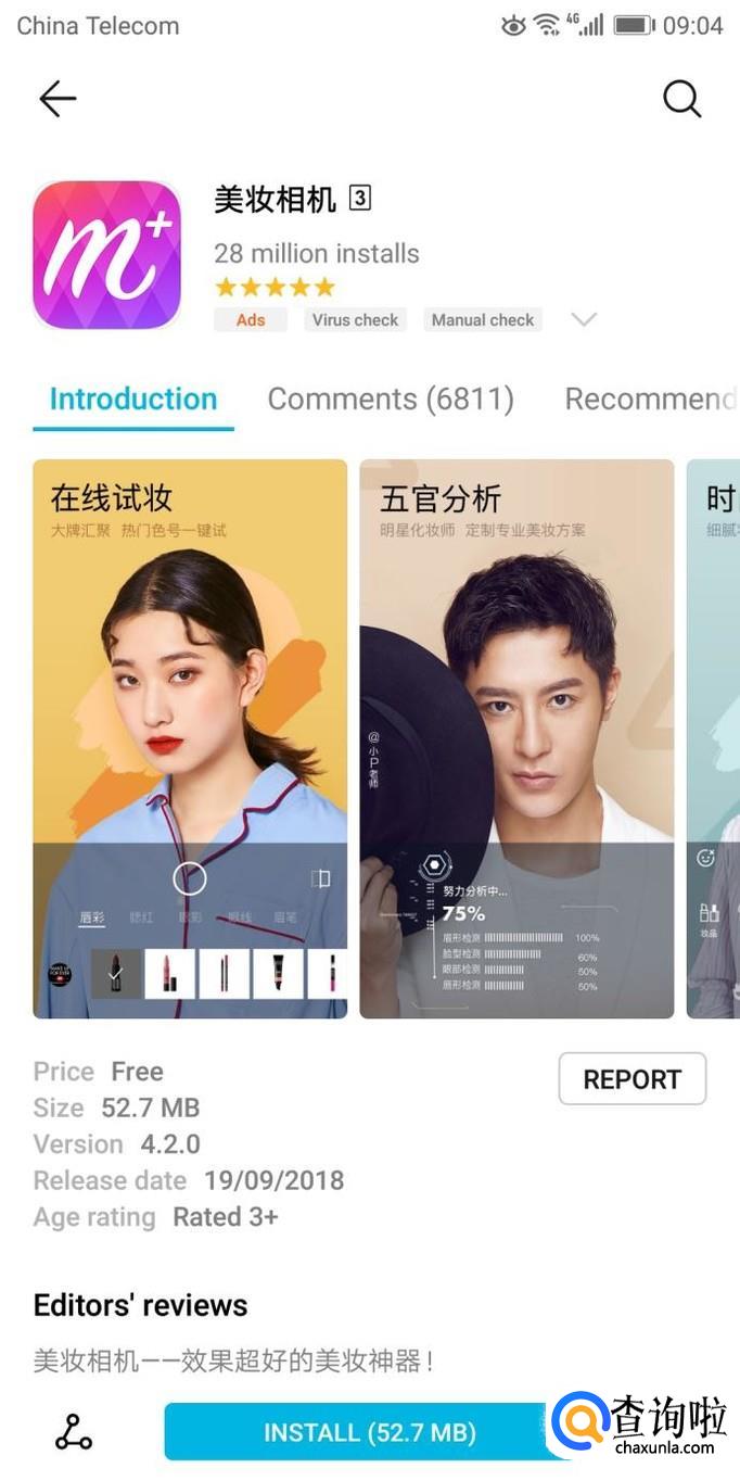 先在APP市场里面,搜索一下美妆相机,找到该APP,看一下关于该软件的简介~